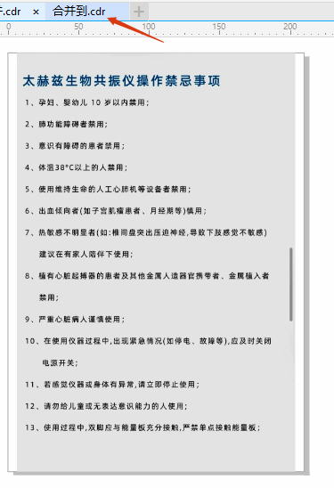 将CDR文档定位到合并到的文档,并定位到插入的参考页面。