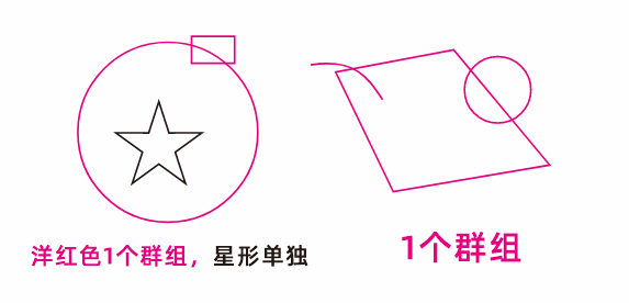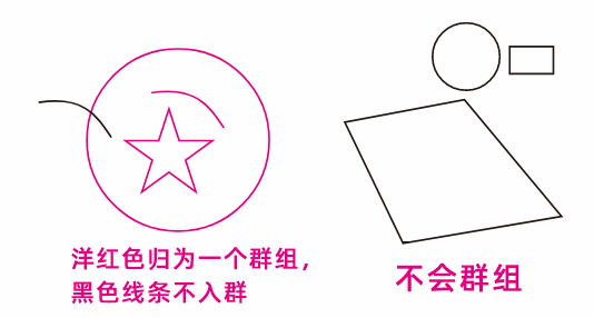 包含:主要目标应用于曲线类图形的群组。如果曲线之间的关系为环绕包裹关系,则归入一个群组,下图所示: