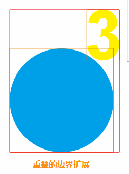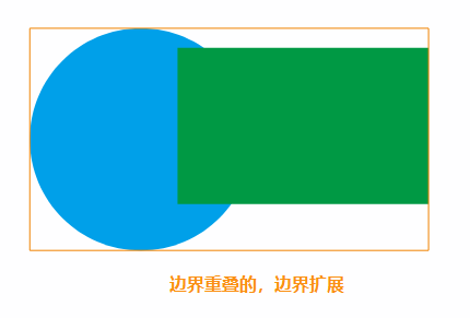 边界(指图形所占用的边界,图形的外围矩形),对有边界的图形区域,一般其边界为区域中最大面积的图形。如果图形边界重合的 ,将按边界扩展处理。如下图: