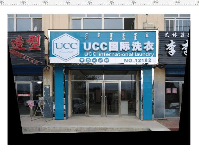 对所选位图的操作,将所选位图的目标区域矫正为矩形,常用于实景图的设计制作,或将拍摄图矫正为实际。