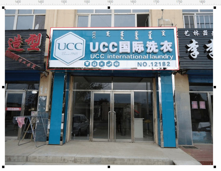 对文档中的拍摄图(位图),用手绘工具,画出闭合的4边形,标出要矫正为矩形的目标区域(参考线形)。红线条所示位置。