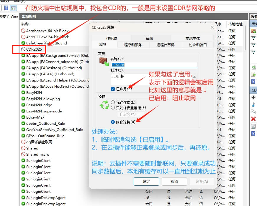 如果网关已经启动,但仍然无法显示验证码,可能是防火墙拦截了云插件的请求,或者设置了禁网规则。请先临时关闭防火墙,解除禁网规则的操作方式如下:
