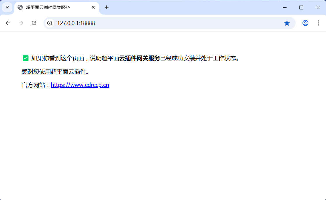 如果能打开,如下图所示,表示网关正常运行,此时应该可以访问云插件网络服务。