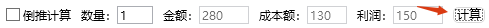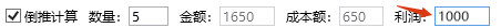 比如在勾选倒推计算的前提下,输入利润数为1000,即这个项目我要赚1000元,则金额就会自动更新为1650(成本是固定的,由产品条目的成本确定)。