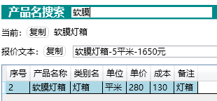 选择某条产品,点击计算按钮,可以按该产品设定的单价和成本计算利润和报价。